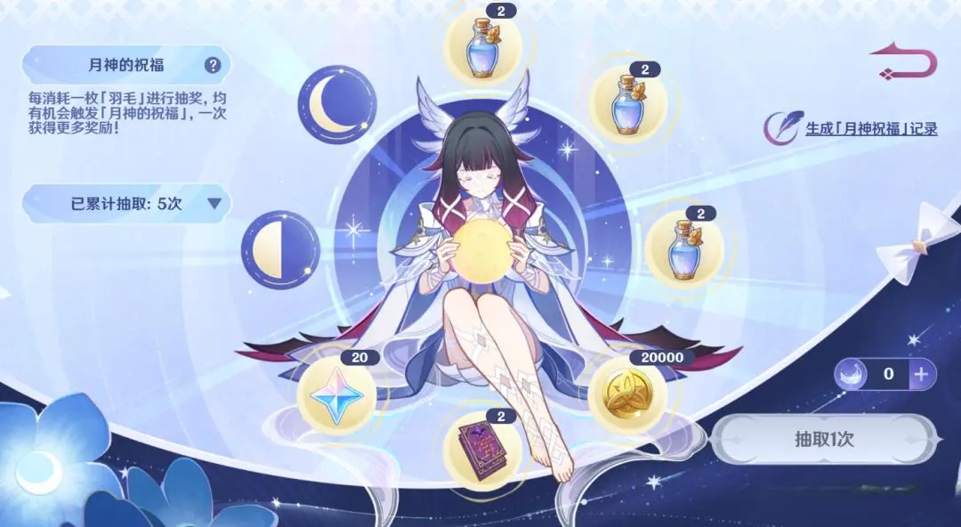 6.3版本开启后上上策,全新网页活动「去月的归处」已上线。旅行者通过完成任务获取相应羽毛进行抽奖,基础奖励为20个原石!如果邀请到回归玩家,还可以拿到20原石奖励!各位旅行者别忘记领取。